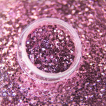 Glitrové ozdoby, kruhového tvaru, veľkosti 1mm, ružovej farby s dúhovým efektom. Sú farebne stále a zdraviu neškodné. Super veľké balenie 8g stačí na stovky aplikácií.