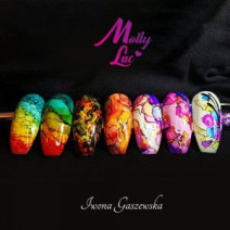 Pri stylingu v štýle aura nails začíname s aplikáciou od stredu nechtu a postupne približujeme aplikátor. Potom sa vytvorí kruh farby, ktorý sústredí intenzitu do svojho stredu.