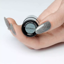 - Pre holografický “mystic” look sa hodia aj strieborné mesačné motívy v hybridnej manikúre.