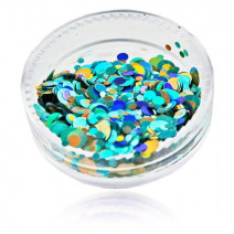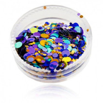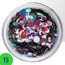 - dekoratívne okrúhle trblietky v tvare konfiet,