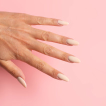 Odtieň Peach Please je pastelová broskyňovo-oranžová farba s teplým podtónom. Pôsobí prirodzene, elegantne a krásne dopĺňa minimalistické aj romantické nechtové štýly.