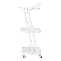 svetelný stolík - kozmetický pomocník vyrobený celý z kovu v odtieňoch sivobielej. esteticky vyrobený, mobilný, ideálny pre kozmetické salóny a kúpeľné salóny.